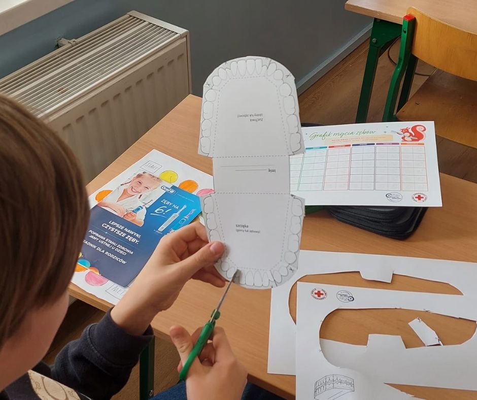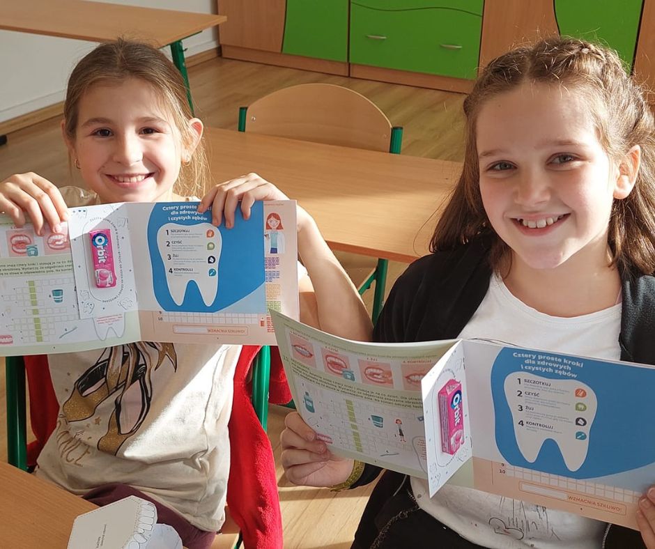 Uczniowie klasy czwartej wzięli udział programie Dziel się Uśmiechem . W ramach tego projektu uczniowie szkół podstawowych biorą udział w zajęciach edukacyjnych na temat prawidłowej higieny jamy ustnej . Program wspierają Mars Polska i Polski Czerwony Krzyż