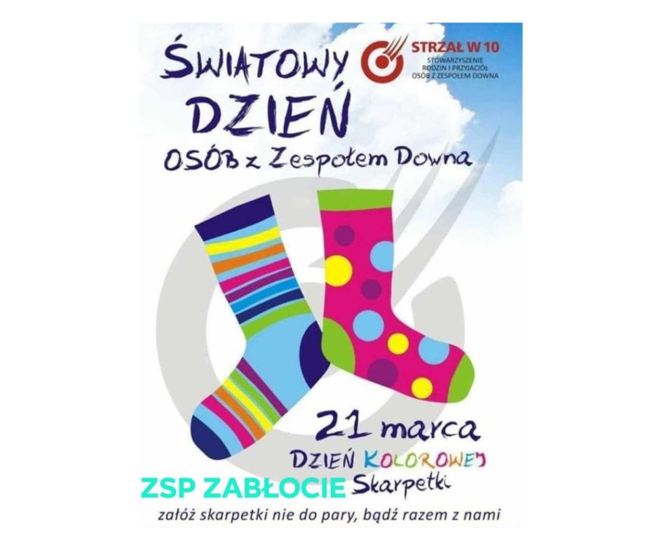 21 marca w Pierwszy Dzień Wiosny obchodzony jest na całym świecie Światowy Dzień Zespołu Downa. Data została wybrana w nieprzypadkowy sposób, ponieważ przyczyną tej wady genetycznej jest TRZeci chromosom, który doczepił się do 21 pary chromosomów- dlatego 21.03. DZIEŃ KOLOROWEJ SKARPETKI.