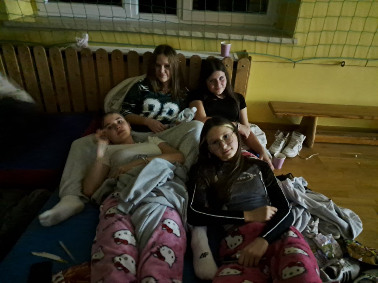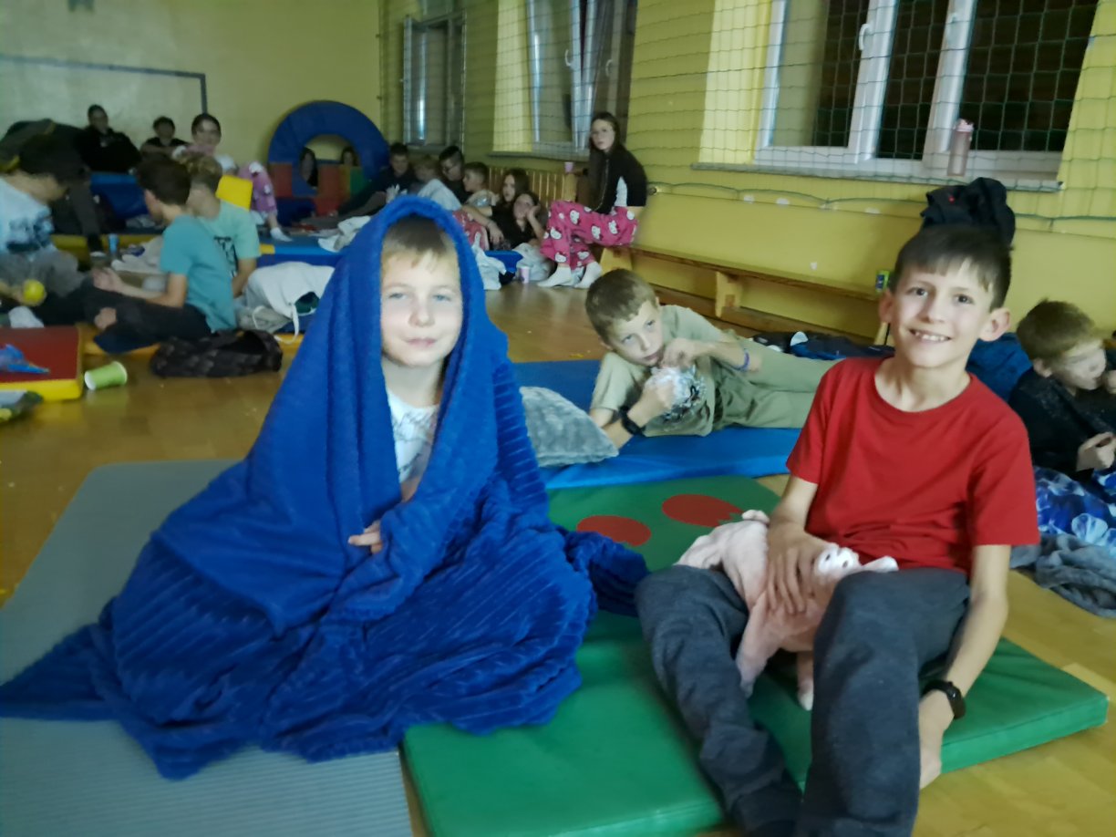Zamiast podręczników przynieśli koce, poduszki i oczywiście dobre humory. Wspólne oglądanie filmu okazało się doskonałym pomysłem na jesienny wieczór – pełen śmiechu, rozmów i miłej atmosfery. Takie spotkania pokazują, że szkoła to nie tylko nauka, ale także miejsce, w którym po prostu dobrze się czujemy.