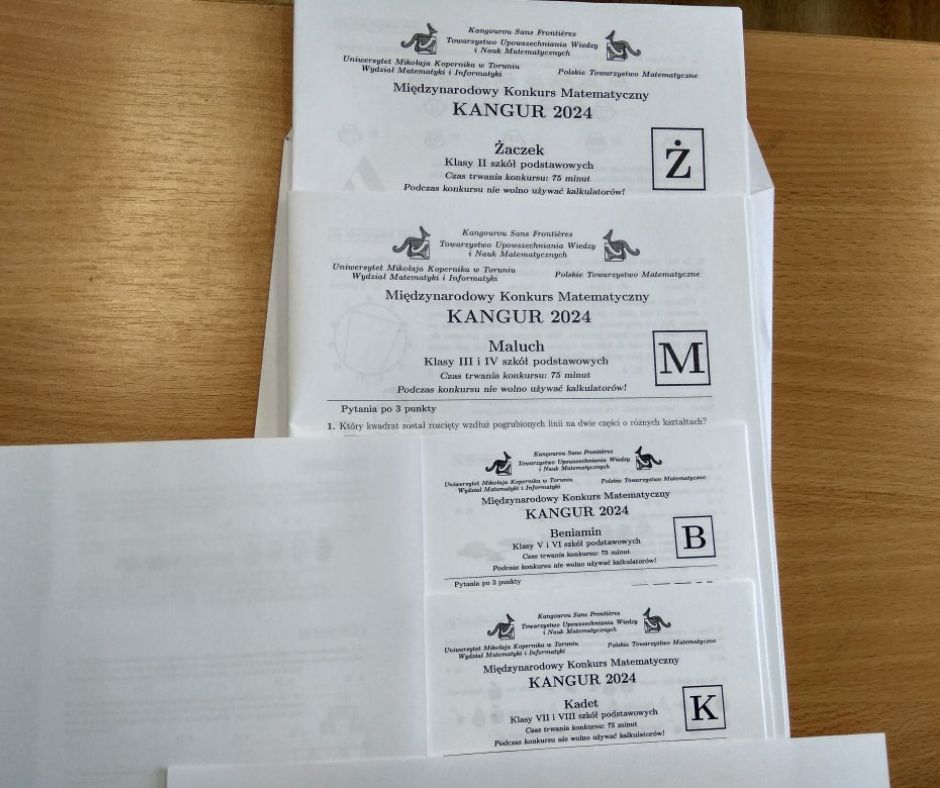 21 marca 2024 r. dwudziestu trzech uczniów z klas II-VII przystąpiło do międzynarodowego konkursu matematycznego „KANGUR”. Konkurs ma charakter jednorazowego testu. Na rozwiązanie testu przeznaczone jest 75 minut.