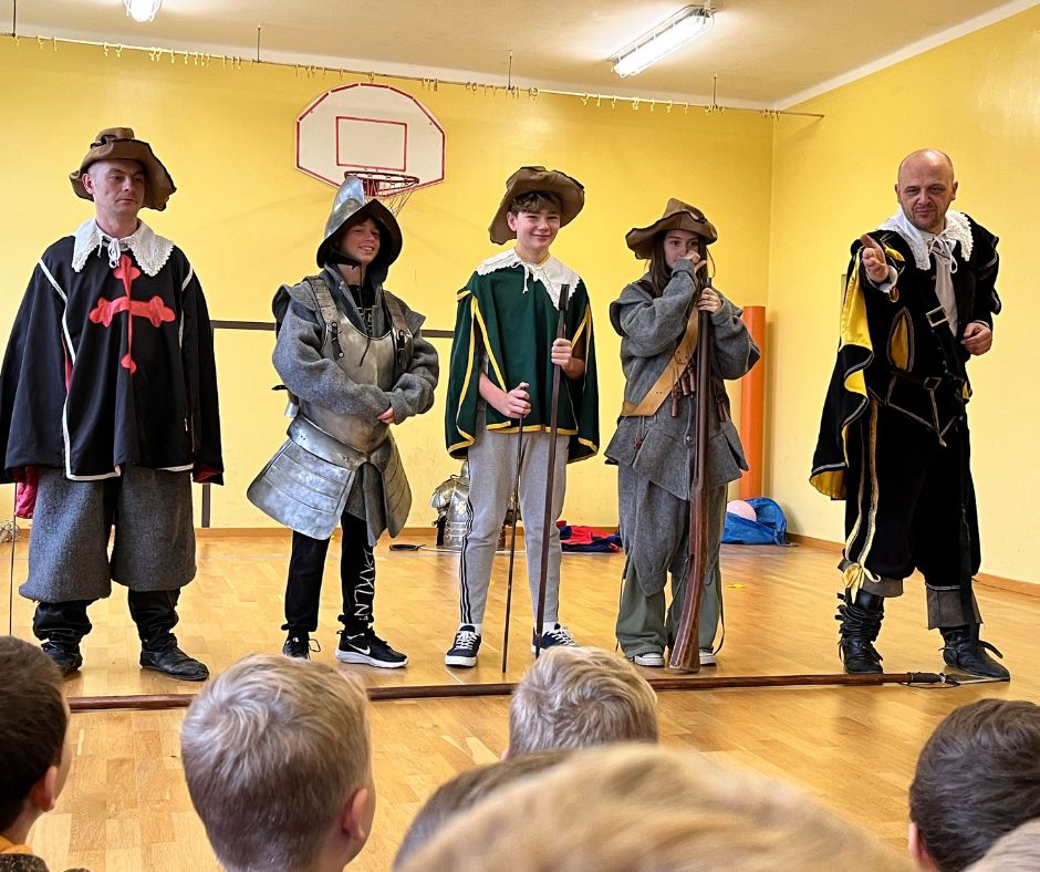 Dnia 30 września roku pańskiego 2022 do Szkoły Podstawowej w Zabłociu zawitali Rycerze. Zacni goście umożliwili naszym uczniom poznanie różnego rodzaju uzbrojenia oraz przybliżyli zagadnienie wojny polsko – szwedzkiej. Dzięki warsztatom, uczniowie mogli poczuć się jak prawdziwi rycerze