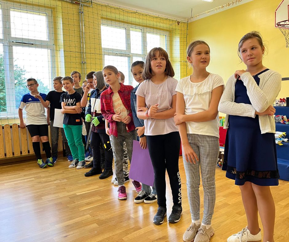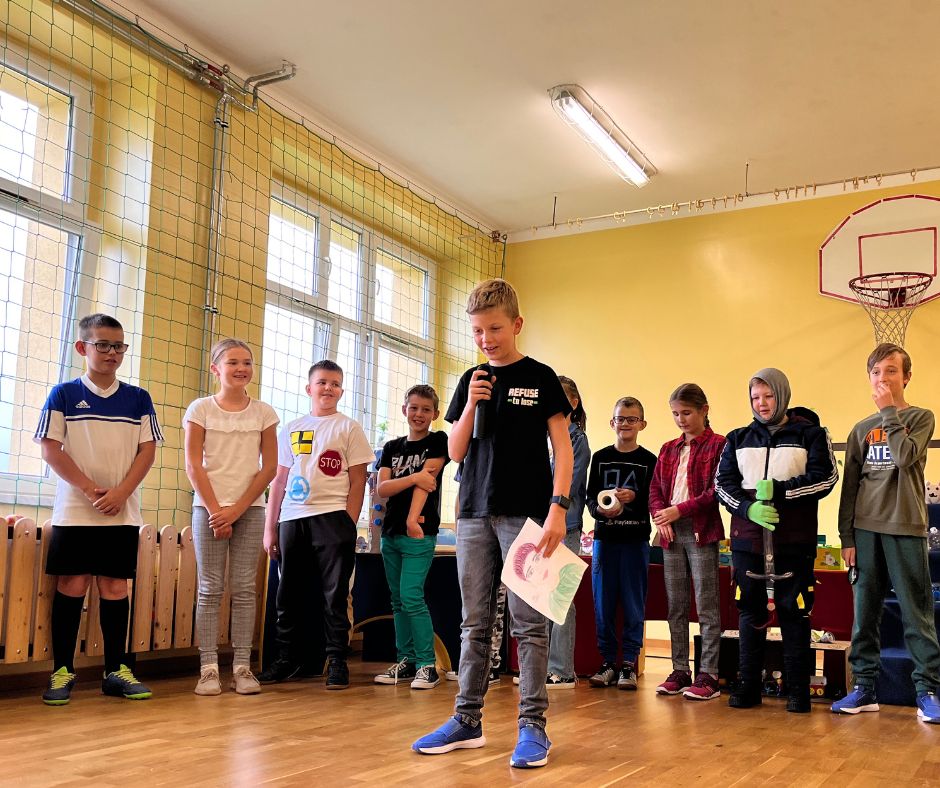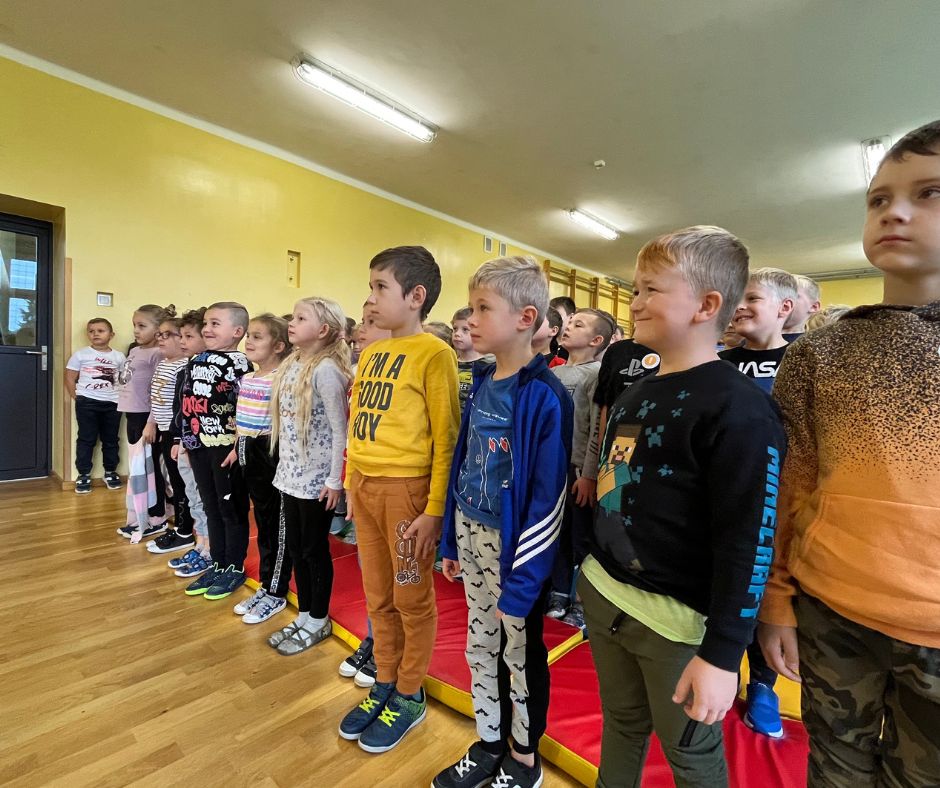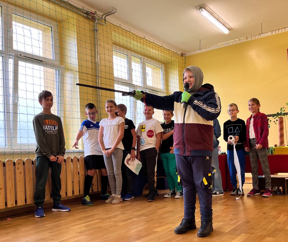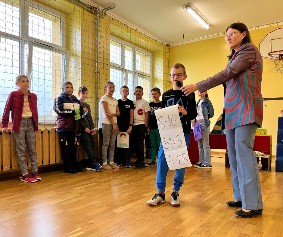 Czwartoklasiści w krótkich i zabawnych scenkach przedstawili jak wygląda obecnie ich nauka nowych przedmiotów. Odpowiedzieli również na pytania dotyczące znajomości szkoły przygotowane przez Samorząd Uczniowski. Na koniec złożyli uroczyste ślubowanie w obecności całej społeczności szkolnej.
