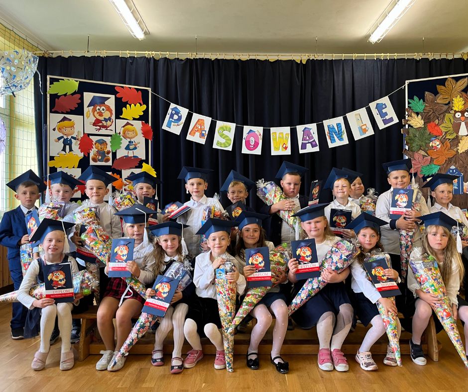 W piątek, 13.10.2023r., odbyła się Uroczystość Pasowania na Ucznia. Pierwszoklasiści wystąpili przed społecznością szkolną i rodzicami prezentując jesienny program artystyczny. Uczniowie z tremą, ale też z wielką radością przedstawili swoje umiejętności recytatatorskie, wokalne i taneczne.