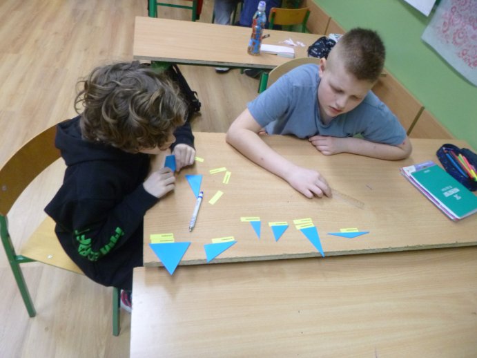 Wśród dostępnych na rynku pomocy dydaktycznych z matematyki brakowało mi modeli różnych trójkątów. Modele wykonane z papieru były bardzo nietrwałe. Dzięki rozwojowi technologii udało mi się zaprojektować, a następnie wydrukować na drukarce 3D różne modele trójkątów.Zostały one wykorzystane na lekcji matematyki w klasie V podczas realizacji tematu „Rodzaje trójkątów”. Zadaniem uczniów było określenie rodzaju modelu trójkąta zarówno ze względu na miary kątów jak i ze względu na długości boków. Uczniowie na konkretnych modelach doświadczyli między innymi, że istnieją trójkąty rozwartokątne równoramienne i prostokątne równoramienne. Dostrzegli również, że nie istnieje trójkąt który jest jednocześnie prostokątny i równoboczny. Jak widać drukarka 3D jest przydatnym urządzeniem. Niestety są również ciemne strony druku 3D. Są nimi bardzo długi czas wydruku, trudność w doborze odpowiedniej temperatury stołu oraz ekstrudera (jest inna dla każdego fi lamentu i zależna również od temperatury otoczenia) oraz słaba adhezja (przyczepność wydruku do powierzchni stołu roboczego).