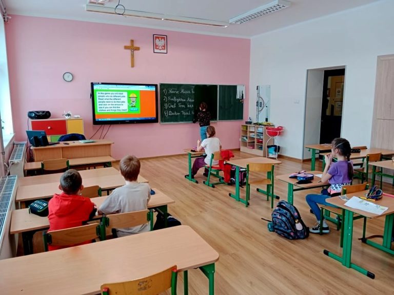 W ostatnich miesiącach w klasach 1-3, w ramach projektu, graliśmy w gry edukacyjne po angielsku, poznając zasady obowiązujące na przejściu dla pieszych oraz powtarzając nazwy zawodów. Opisywaliśmy części ciała, uczyliśmy się nazw ubrań, a także opowiadaliśmy o ulubionych potrawach ![]()