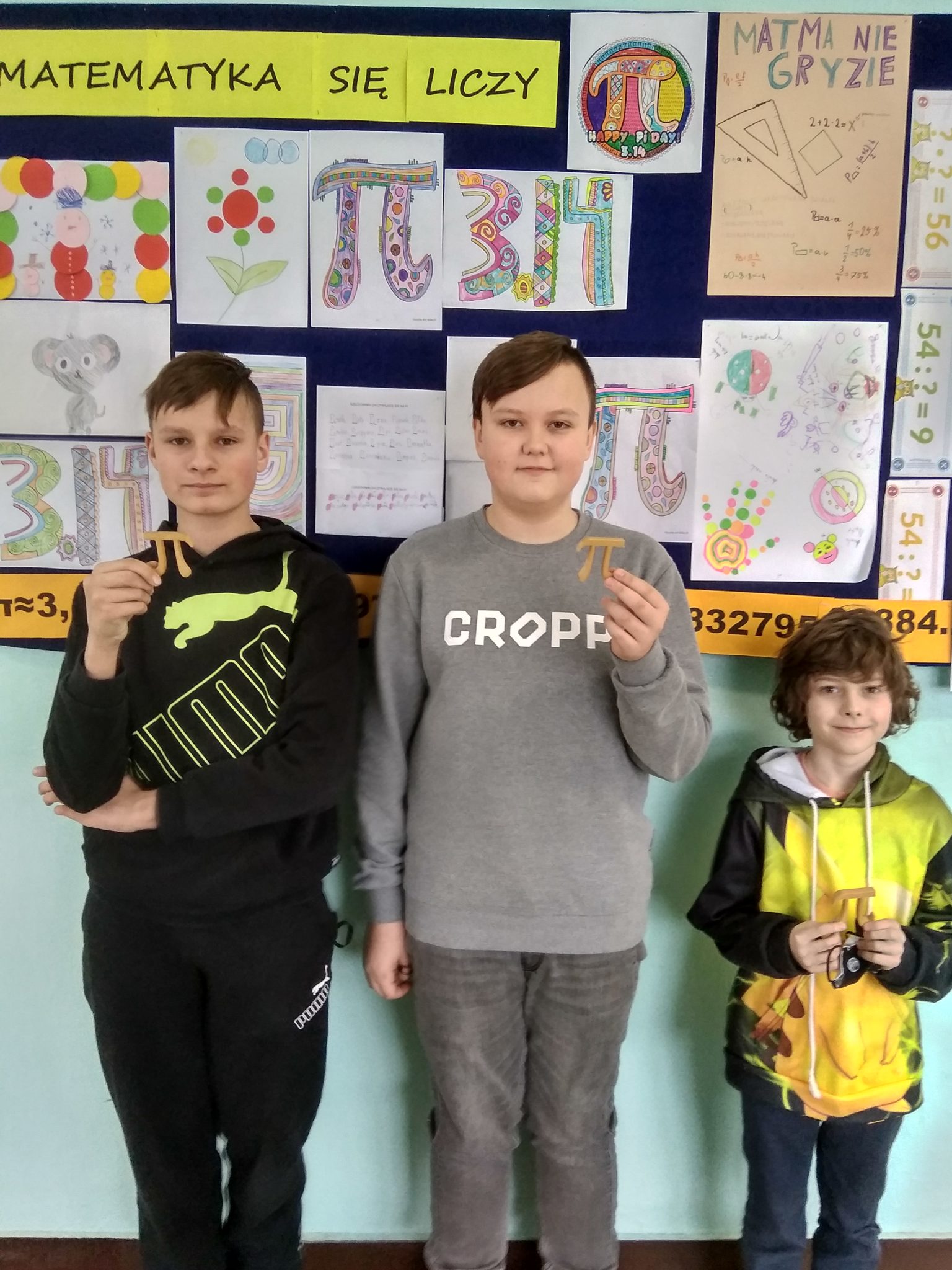 14 marca w ramach świętowania DNIA LICZBY PI uczniowie klas IV-VIII mogli wykazać się swoimi indywidualnymi technikami zapamiętując jak najwięcej cyfr rozwinięcia liczby Pi. Uczniowie mieli około 30 min. czasu na zapamiętanie jak najwięcej cyfr. Chłopcy zaskoczyli wszystkich swoją doskonałą pamięcią. Trzej najlepszych otrzymało unikatową statuetkę tej wyjątkowej liczby. Gratulujemy zwycięzcom.