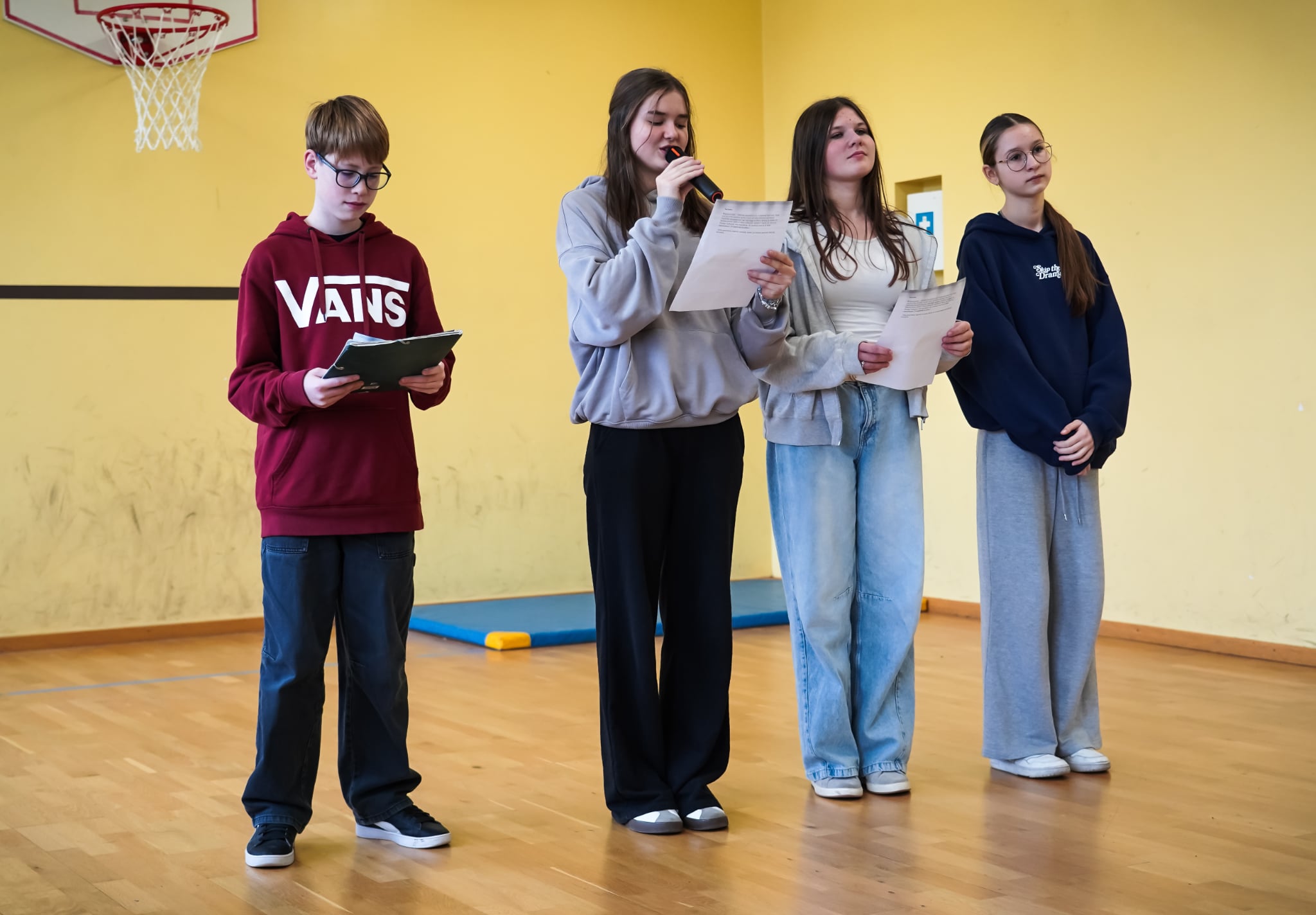 Uroczysty finał odbył się w piątek, 21 listopada, podczas szkolnego apelu. Siódmoklasiści zabrali nas w krótką podróż przez historię tabliczki mnożenia i pokazali, że jej znajomość naprawdę przydaje się w codziennym życiu. Z kolei trzy pełne energii dziewczynki z klasy 4 podbiły scenę tanecznym układem połączonym z piosenką o… no a jakże – tabliczce mnożenia!